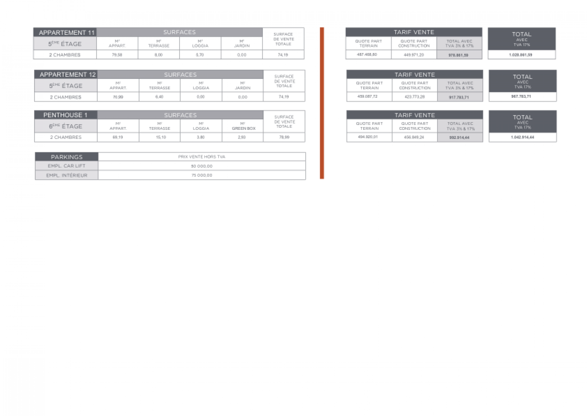 - 2 Penthouses à 2 chambres,